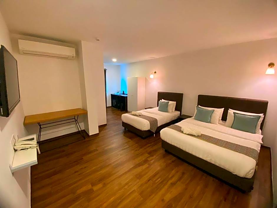 Offering free toiletries, this quadruple room includes a private bathroom with a shower, a bidet and a hairdryer. The air-conditioned quadruple room offers a flat-screen TV, a mini-bar, a seating area, a wardrobe as well as city views. The unit offers 2 beds.